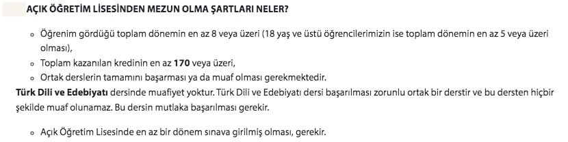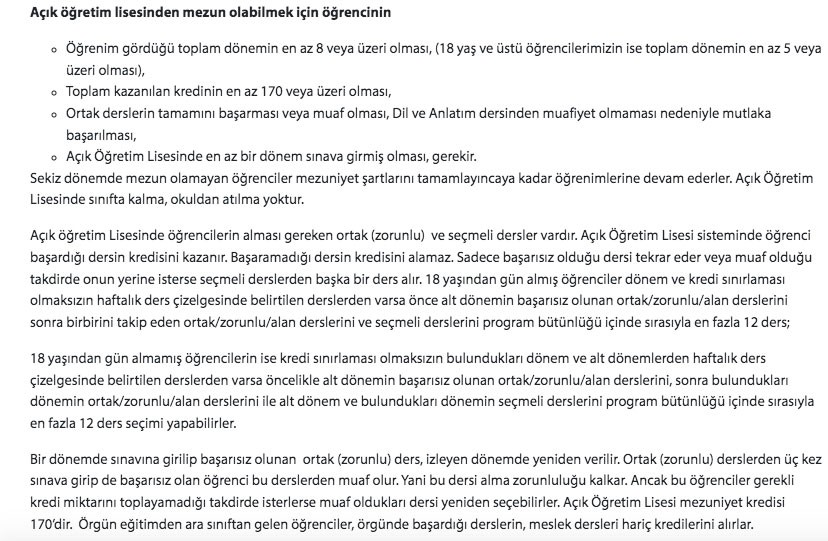 Öncelikle eğitim herkes için 4 yıllıktır. 2005 yılı itibariyle liselerin 4 yıla çıkarılmasıyla önce örgün liselerde, 2008-2009 itibariyle de Açık Öğretim Lisesi´nde eğitim 4 yıla çıkarılmıştır. Açık Öğretim Lisesinde veya örgün okullarda 3 yıllık okuyan bir öğrenci Açık Öğretim Lisesi de de 4 yıllık sisteme tabidir.