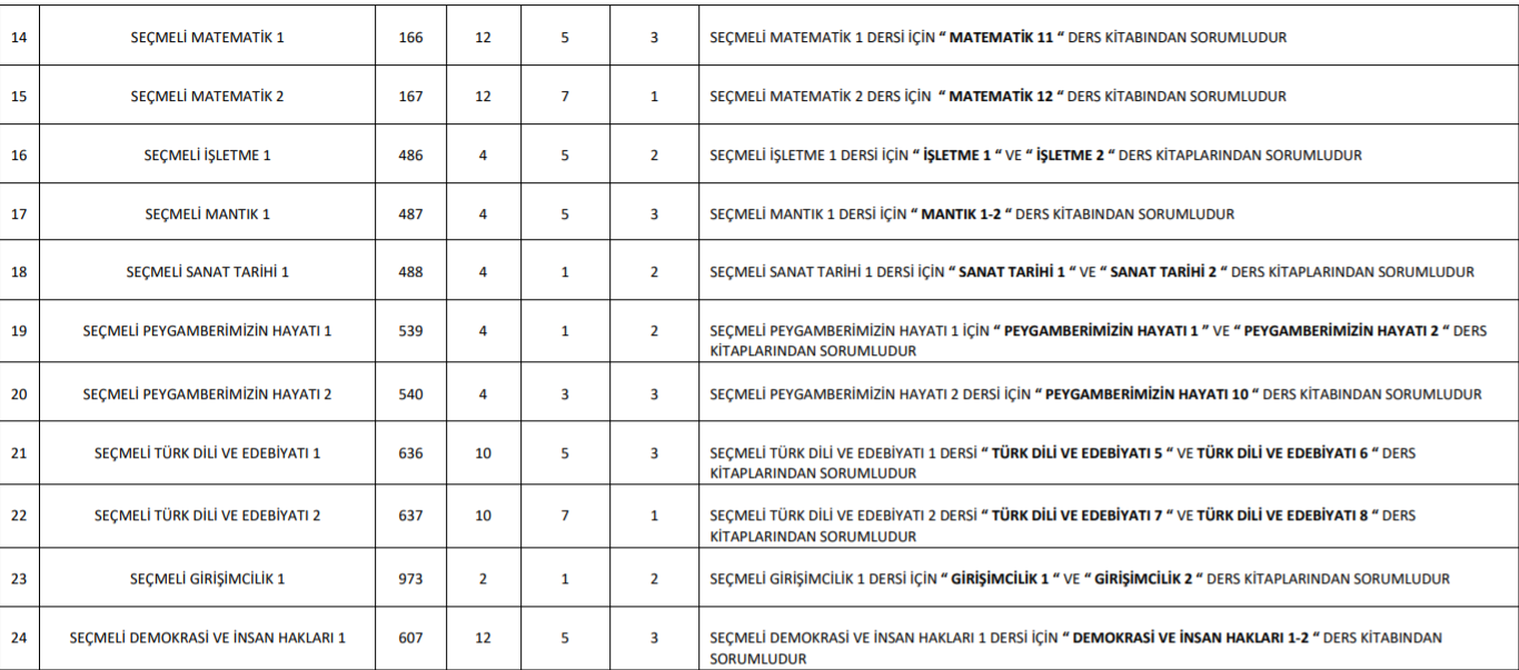 AÖL seçmeli derslerden sınava girecekler hangi kitaplardan sorumlu?