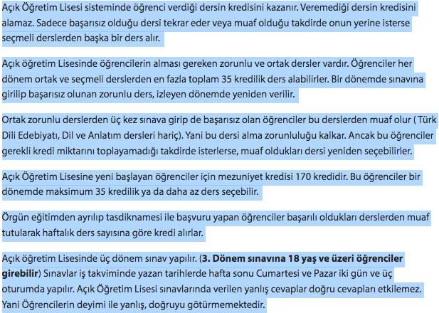 Lise 3. sınıfın karşılığı Açık Öğretim Lisesinde 5 ve 6. dönemdir.