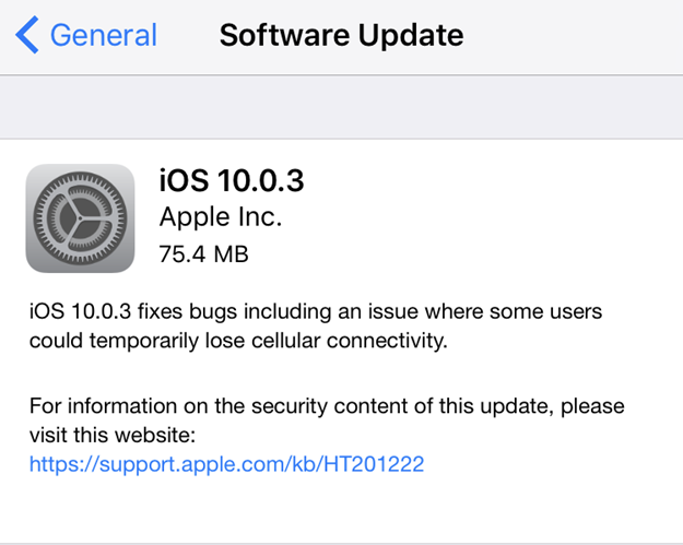 iOS 10 yükseltmesinde kısa süreli sorun yaşanmasından dolayı direkt olarak iOS 10.0.1'i yayına alan Apple, daha sonra iOS 10.0.2 güncellemesini dağıtmıştı. Ancak iOS 10.0.2 sürümünde de bazı hatalar baş gösterdi. Apple, bugün sadece iPhone 7 ve iPhone 7 Plus için iOS 10.0.3 güncellemesini yayınladı.