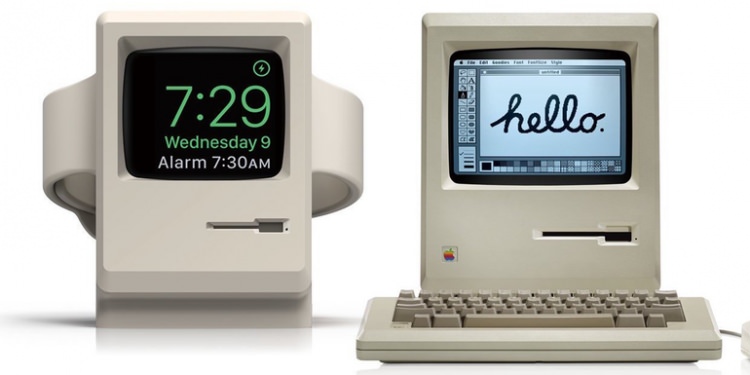 Elago isimli şirketin geliştirdiği ve görünümüyle eski Macintosh'ların birebir aynısı olan şarj cihazı Apple Watch'ları işte böyle şarj ediyor.
