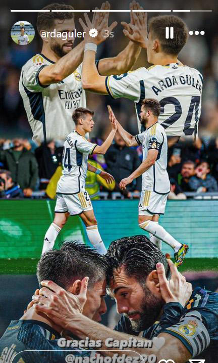 İspanyol devinin formasını giyen Arda Güler, Nacho'nun veda kararının açıklanmasının ardından bir paylaşım yaptı ve veda etti.