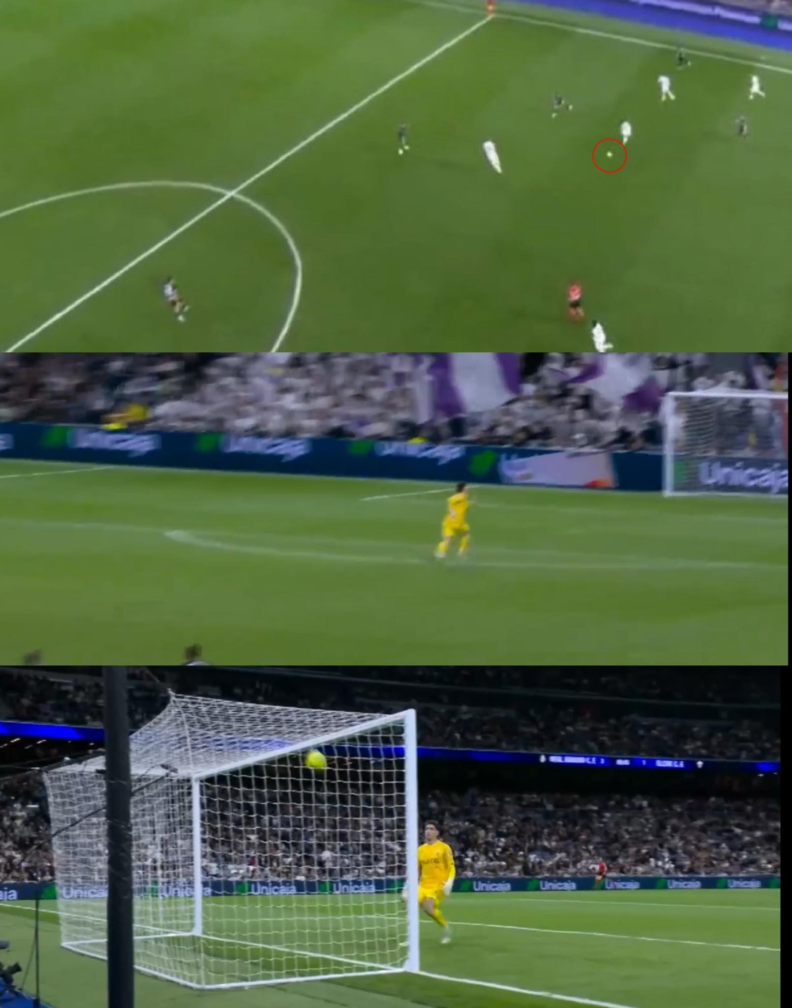 Süzülerek giden top ağlarla buluşurken, bu gol La Liga tarihinde en uzak mesafeden atılan gol rekorunu egale etti.