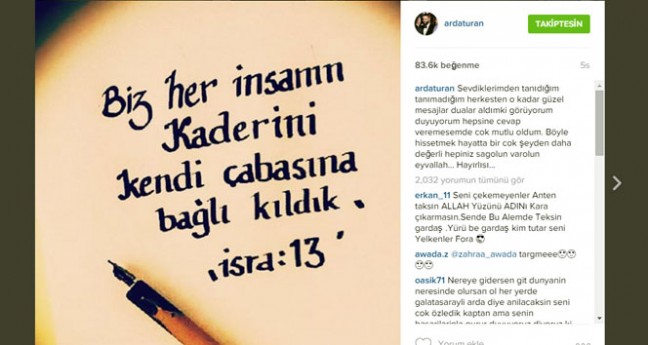 Arda son olarak Instagram'da İsra Suresi'nin 13. ayetini paylaşarak herkese teşekkür etti:
