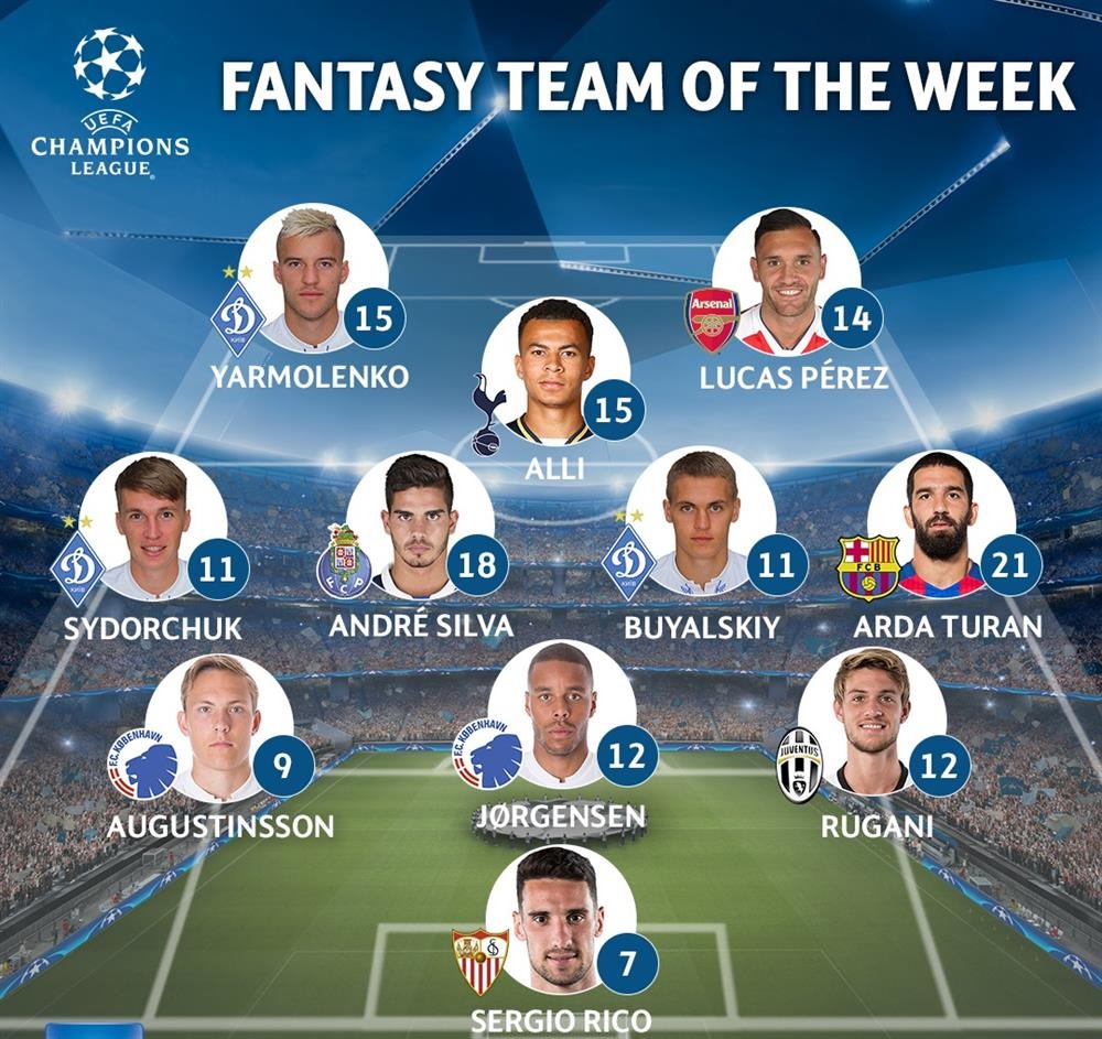 Haftanın oyuncusu adayı olarak da gösterilen milli futbolcumuzun yanı sıra Yarmolenko, Alli, Lucas Perez, Buyalskiy, Andre Silva, Rugani, Jorgensen, Augustinsson, Sydorchuk ve Sergio Rico da haftanın en iyi 11'in yer bulan isimler oldu.