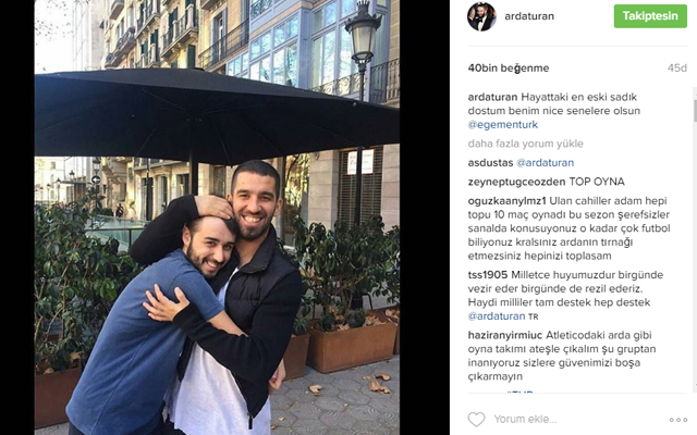 Her zaman yanında olan ve sıklıkla birlikte fotoğraf paylaştığı çocukluk arkadaşı Egemen Türk ile bir fotoğrafını paylaşan Arda, bu paylaşım aracılığıyla Instagram üzerinden yakın arkadaşının doğum gününü kutladı. Fotoğrafın altına, “Hayattaki en eski sadık dostum benim nice senelere olsun” yorumunu düşen milli futbolcuyu, Türk futbolseverler adeta tepki yağmuruna tuttu.