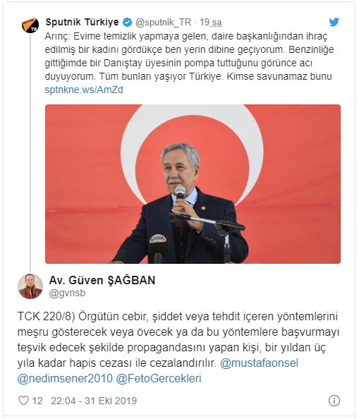 Arınç’ın açıklamalarının suç olduğunu belirten Şağban, sosyal medya hesabından şunları söyledi: