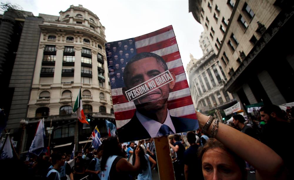Arjantin'in başkenti Buenos Aires'te 1978-83 yılları arasında hüküm süren cunta rejimini protesto etmek için rejimin 40. yılında binlerce kişi meydanlardaydı. 'Bir daha asla' sloganı altında yürüyen Arjantinliler, resmi bir ziyaret için ülkede bulunan ABD başkanı Barack Obama'yı da protesto ettiler.
