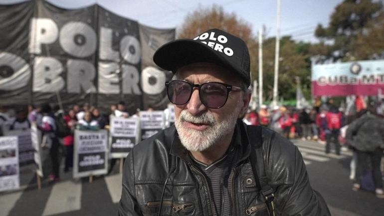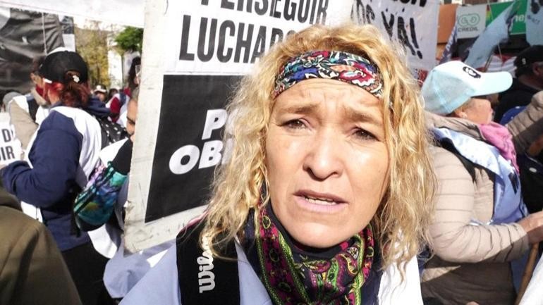 "Milei hükümetinin göreve başlamasından altı ay sonra hükümet yiyecekleri sakladı, aşevleri için yiyecek olmadığını söyledi ve 6 milyon kilo vardı. Biz de o andan itibaren bunu kınamaya başladık."