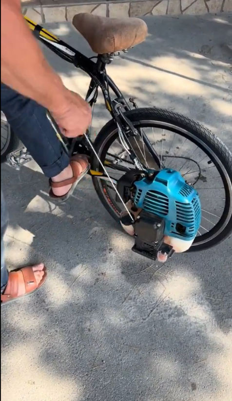 Bir bisiklet tutkunu, arka tekerleğine motor takarak bisikletini motosiklete dönüştürdü.