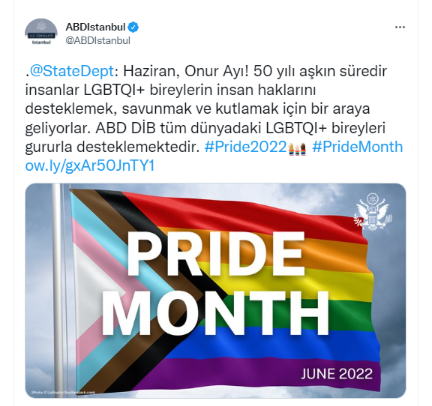 Haziran, Onur Ayı! 50 yılı aşkın süredir insanlar LGBTQI+ bireylerin insan haklarını desteklemek, savunmak ve kutlamak için bir araya geliyorlar. ABD Dıiş İşleri Bakanlığı, tüm dünyadaki LGBTQI+ bireyleri gururla desteklemektedir.