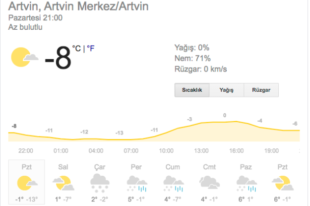 Meteoroloji Genel Müdürlüğü tarafından yapılan son değerlendirmelere göre; Ülkemiz genelinin parçalı ve çok bulutlu, Marmara’nın kuzey ve doğusu, Orta ve Batı Akdeniz kıyıları, İç Anadolu’nun kuzey ve doğusu, Batı ve Orta Karadeniz, Doğu Anadolu'nun güneydoğusu ile Isparta, Adana, Trabzon ve Rize çevrelerinin yağışlı geçeceği tahmin ediliyor. Yağışların; kıyı kesimlerde yağmur ve sağanak, yağış alan diğer yerlerde karla karışık yağmur ve kar şeklinde olması bekleniyor. İç ve doğu kesimlerde buzlanma ve don olayı bekleniyor. Doğu Karadeniz’in yüksek kesimlerinin dik yamaçları ile Doğu Anadolu’nun doğusunda yüksek kar örtüsünün bulunduğu yerlerde çığ tehlikesi bulunmaktadır.