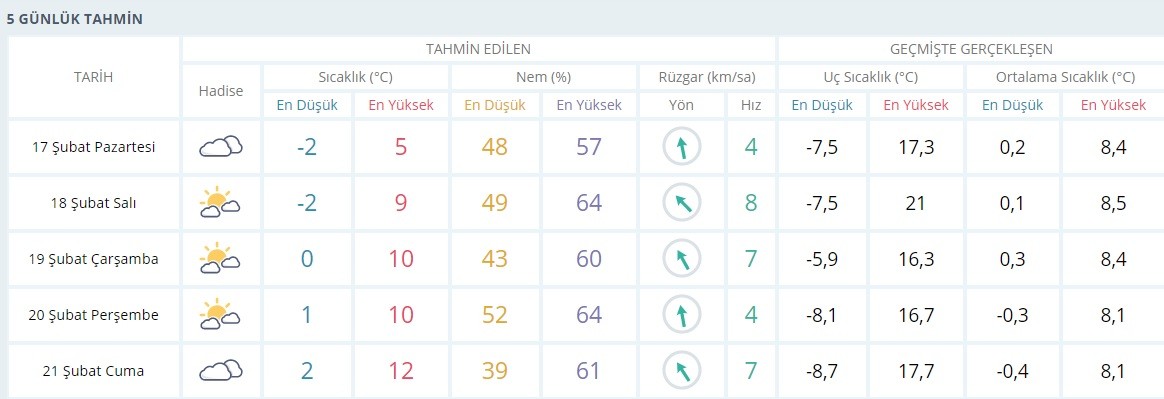 5 günlük hava tahmin raporu şöyle: