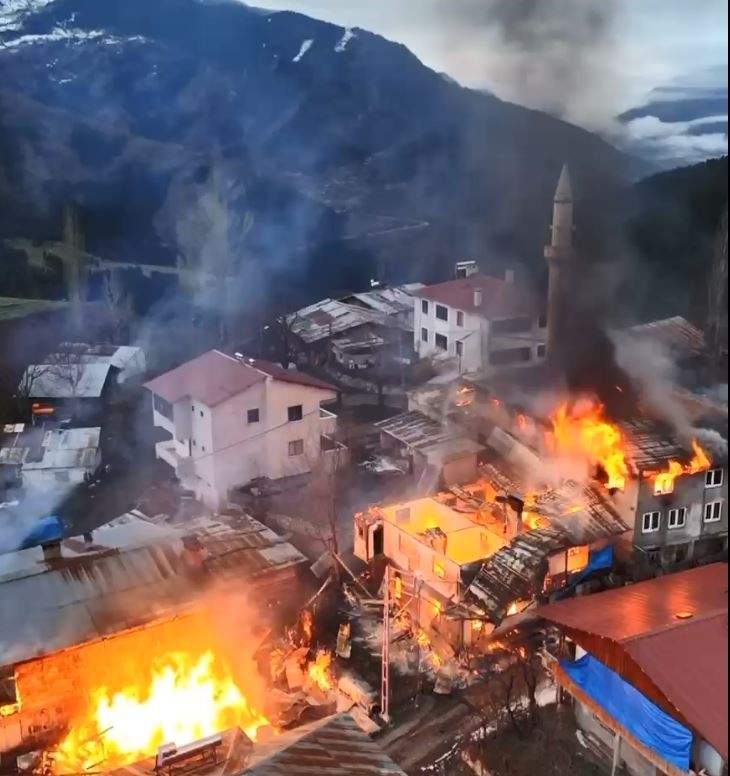 Dutlu köyünde Şener, Şinasi ve Mehmet Özcan kardeşlere ait 2 katlı ahşap evde, dün sabah saatlerinde, bilinmeyen nedenle yangın çıktı. Alevler büyüyüp bitişikteki 3 ev, cami ve lojmanına sıçradı. Yangını fark eden köylülerin uyarısıyla evlerde bulunanlar, dışarı çıktı. İhbar üzerine bölgeye itfaiye, AFAD ve sağlık ekipleri sevk edildi. İtfaiyecilerin müdahalesiyle yangın söndürüldü. Yangında 4 ev, cami ve lojman kullanılamaz hale gelirken, can kaybı ve yaralanmanın olmadığı bildirildi.