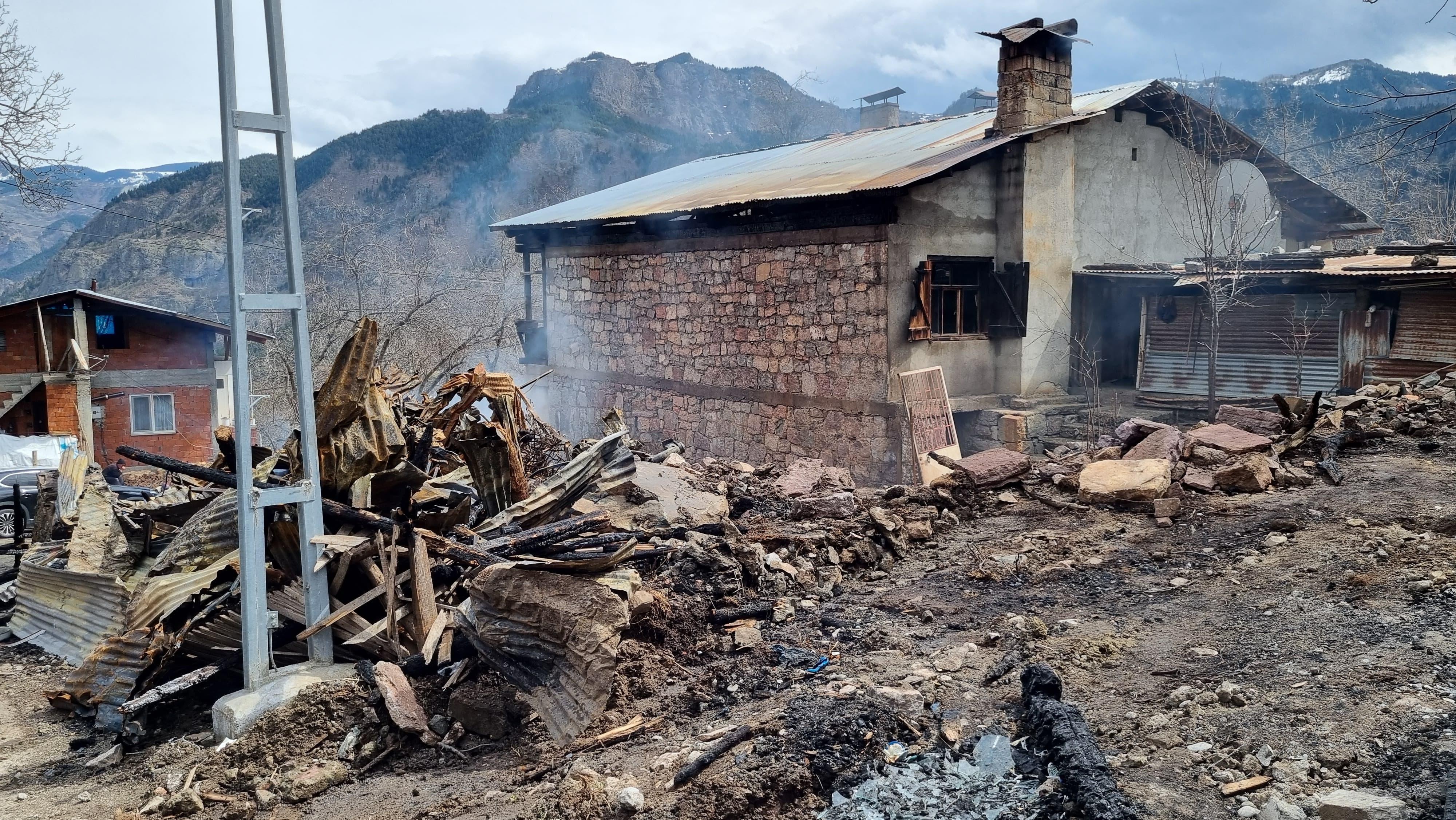 Yangının çıkış nedeninin belirlenmesi için incelemeler sürüyor. Evlerin ve cami enkazının kaldırılması için de ekipler iş makineleriyle çalışmalarına devam ediyor. Yangında lojman ve 4 evle birlikte yanarak kullanılamaz hale gelen tarihi camiden geriye duvarları ve minaresi kaldı. Yangında 1 asırlık caminin mihrabındaki yer alan Arapça 'Allah' ve 'Muhammed' yazılarının da zarar görmediği belirlendi.