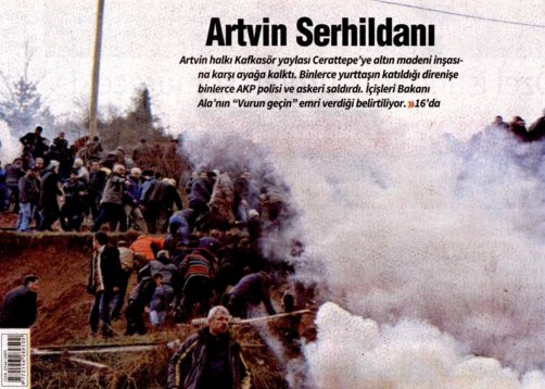 PKK gazetesi Özgür Gündem, Artvin'deki maden ocağına karşı gösterilen tepkiyi, "Artvin Serhildanı" başlığıyla haber yaptı.