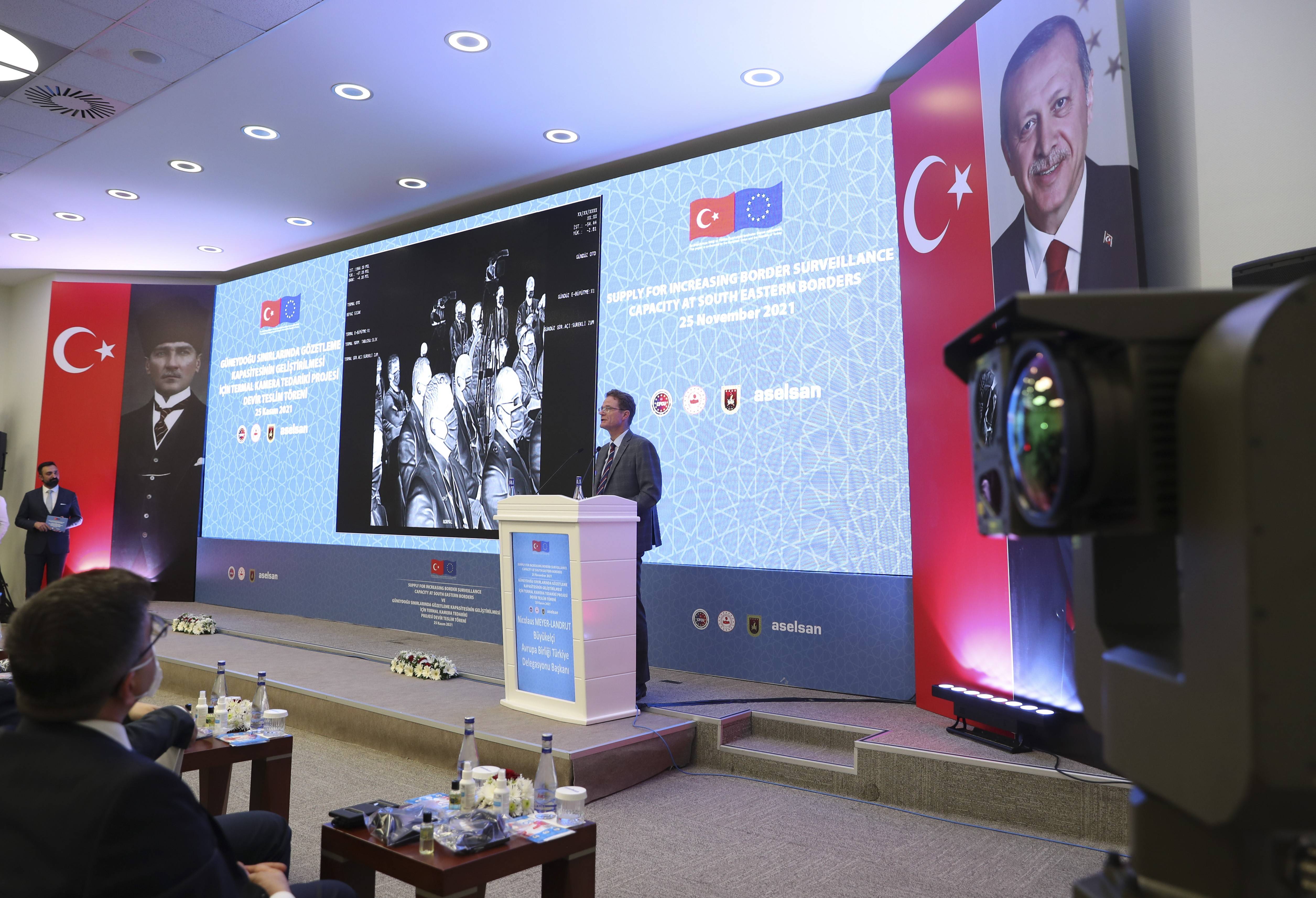 Avrupa Birliği katkısıyla yürütülen Güneydoğu Sınırında Sınır Gözetleme Kapasitesinin Artırılmasına Yönelik Tedarik Sözleşmesi kapsamındaki teslimatlar için şirketin Akyurt yerleşkesinde tören düzenlendi.