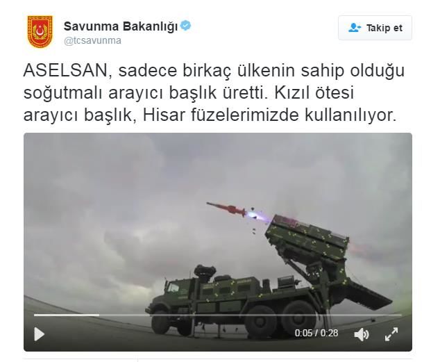 Milli Savunma Bakanlığı'nın Twitter hesabında, ASELSAN'ın milli başlığın üretimine başlandığı duyuruldu. Bakanlığı'ın Twitter hesabında, "ASELSAN, sadece birkaç ülkenin sahip olduğu soğutmalı arayıcı başlık üretti. Kızıl ötesi arayıcı başlık, Hisar füzelerimizde kullanılıyor." denildi.