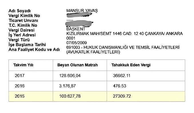 Yolsuzluk iddialarıyla gündemden düşmeyen CHP ve İYİ Parti’nin Ankara Büyükşehir Belediye Başkan Adayı Mansur Yavaş’ın vergi kaçakcılığı ortaya çıktı. Sahte çek senet üzerinden 600 bin dolarlık tahsilat yapmaya kalkışan Yavaş’ın, kazancını da devletten gizlediği belirlendi. Bugünkü dolar kuruyla 3 Milyon 264 bin Türk Lirası’nı haksız bir şekilde cebine indirmeye kalkışan Yavaş’ın, bu kazancını vergi dairesinden gizlediği ortaya çıktı. Sadece bir dosyadan kazandığı vekalet ücretinin 3,2 milyon lira olduğunu kendisi açıklayan Yavaş’ın, 2016 yılında Başkent Vergi Dairesi’ne sadece 3 bin 176 lira 87 kuruşluk bir yıllık gelirinin olduğunu beyan ettiği belirlendi. Tek bir senet üzerinden milyonlarca lira kazandığı ifşa olan Yavaş’ın 2015 ve 2017 yılları içinde cüzi bir kazanç gösterdiği kaydedildi.