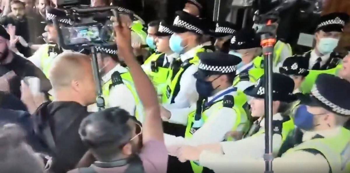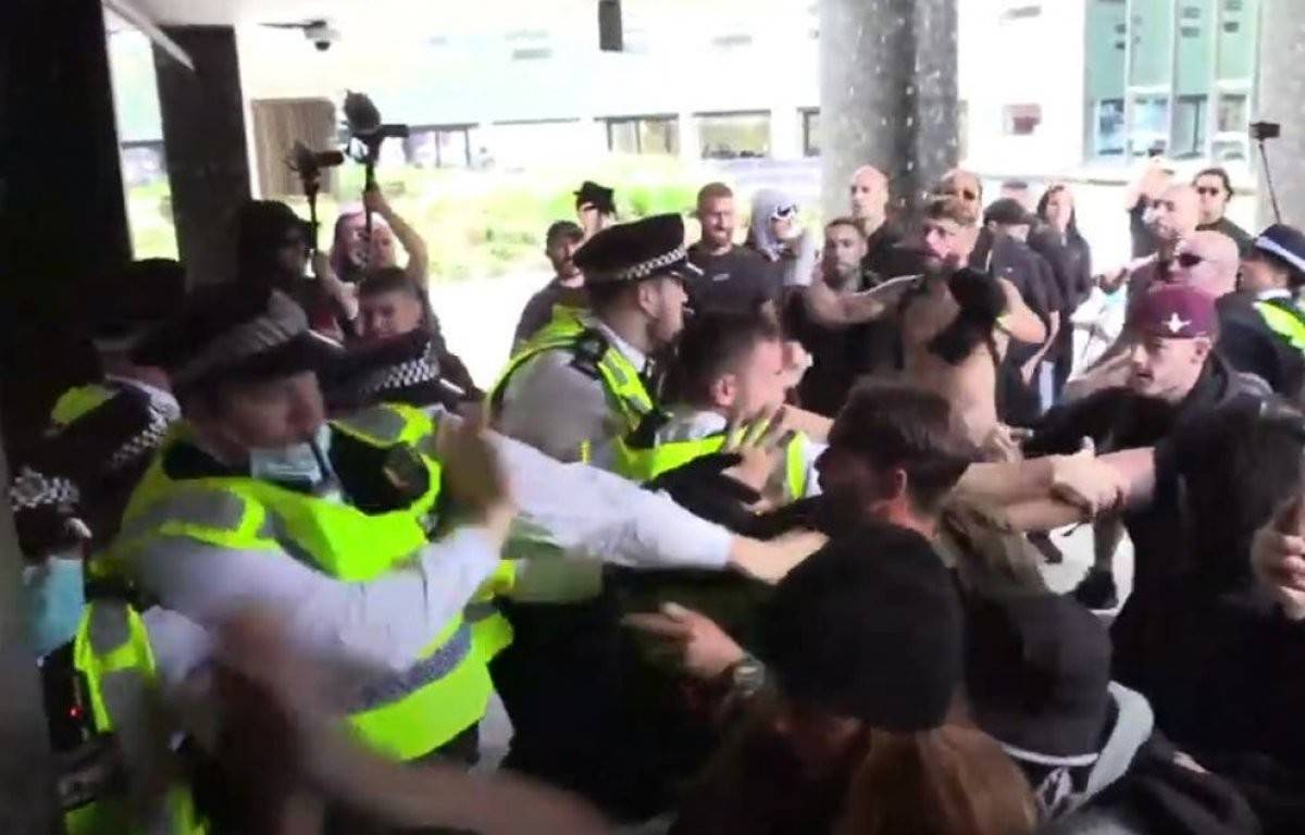 Aşı karşıtı gruptan BBC binasına baskın! Polis ve kalabalık arasında arbede çıktı
