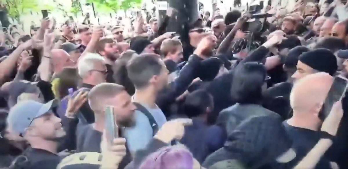 Sosyal medyada paylaşılan görüntülerde, göstericilerin polis engeline rağmen binaya girmek için saldırıya geçtiği görüldü. Polisle göstericiler arasında bir süre itiş kakış yaşandı.