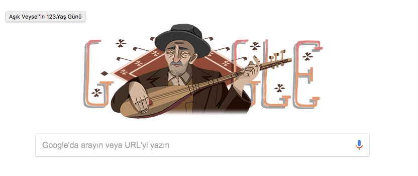 Aşık Veysel'in doğum gününde Google, Türkiye'deki kullanıcılarına hoş bir sürpriz yaptı. Aşık Veysel unutmayan Google, hazırladığı özel tema ile internet kullanıcılarını şaşırttı. Aşık Veysel'in sazıyla birlikte türkü söylerkenki halinin resmedildiği temada, arkada duran anadolu kilim motifleri de dikkat çekiyor..
