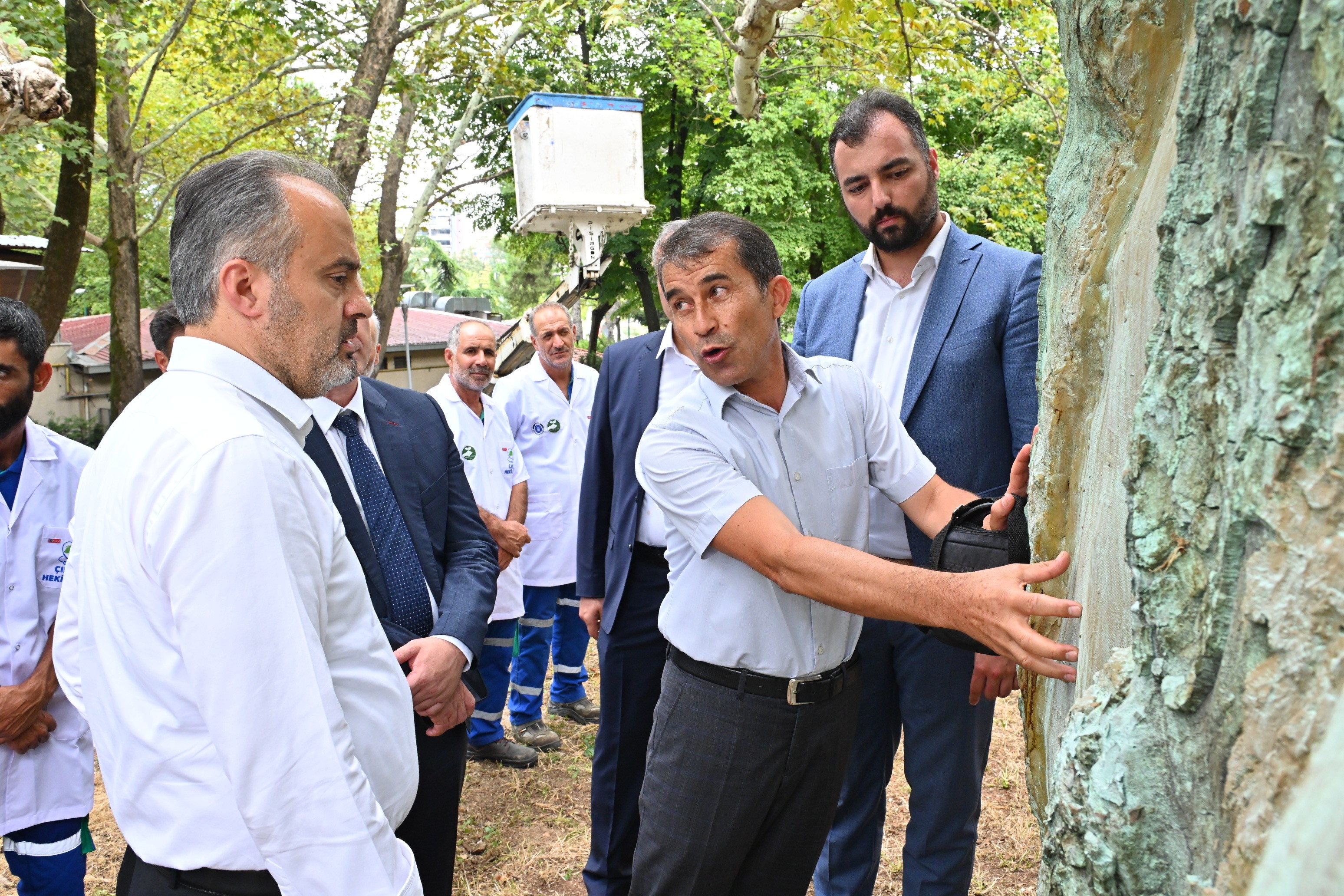 Çınar ağaçlarının korunarak geleceğe miras olarak bırakılmasına büyük önem verdiklerini belirten Başkan Aktaş, ağaç bakımlarını dantel işçiliği inceliğinde yaptıklarını söyledi. Bursa’nın bir Osmanlı şehri oyduğunu ve Osmanlı demenin çınar demek anlamına geldiğini ifade eden Başkan Aktaş, “Başta çınar ağaçları olmak üzere Bursa’mızda 1240 civarında anıt ağacımız var. 100 yıl ile 600 yıllık ömürleri olan ağaçlar. Büyükşehir Belediyesi olarak Bursa Teknik Üniversitesi ile çok güzel bir projeye imza attık. Anıt ağaçlarımız Bursa tarihinin şahitleri. Anıt ağaçlarımızın korunması ve geleceğe miras olarak bırakılması bizler için büyük önem taşıyor. Farklı şehirlerimizde bırakın tedavi etmeyi, onları rehabilite etmeyi, kesilerek ortadan kaldırılırken, biz bir dantel işçiliği inceliğinde bunlara tek tek el atıyoruz. Tarım ve Peyzaj A.Ş. marifetiyle öncelikle anıt ağaçlarımızın sorunlarını belirleyip çözüme ulaştırmak için hızla hareket ediyoruz. Şehrimizin süsü olarak kenti saran asırlık çınar ağaçlarımızın periyodik bakım ve restorasyon çalışmalarını uzman ekibimiz ve Bursa Teknik Üniversitesi işbirliğinde gerçekleştiriyoruz. Anıt ağaçlarımız için gece gündüz canla başla çalışan, beyaz önlükleriyle bir doktor nezaketinde ve zarafetinde çalışan uzman ekibimize de Çınar Hekimleri adını verdik ve bu ismin patentini de aldık” diye konuştu.