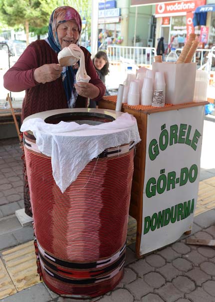 Dondurma yapmayı büyüklerinden öğrenen ve 65 yıldır bu işi yapan Fatma nine, mesleğin sırlarını oğluna da öğretti.