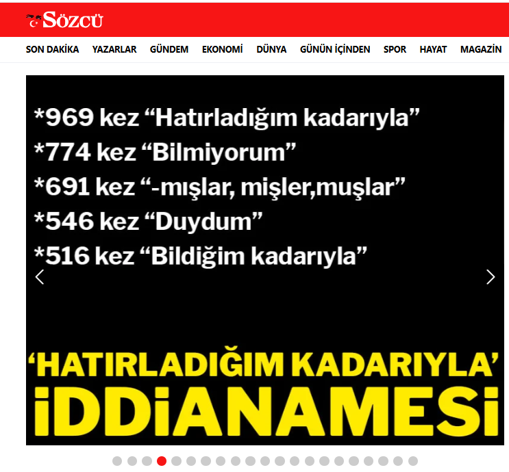 Devletin resmi kayıtlarına giren 3.741 sayfalık belgeyi görmezden gelen gazete, iddianamede geçen “hatırlamıyorum”, “bilmiyorum”, “mışlar, mişler, muşlar” ifadelerini öne çıkararak kamuoyunu yanıltmaya çalıştı.
