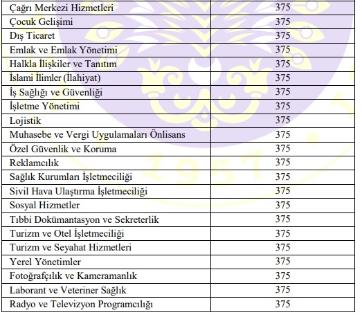 İkinci Üniversite kapsamında başvurabileceğiniz önlisans programları;