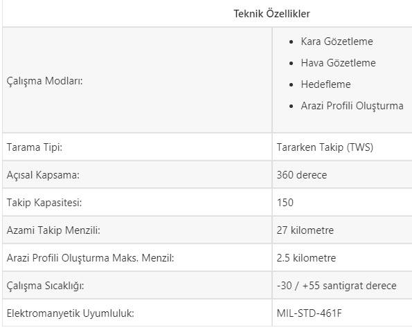 MİLDAR, azami 27 kilometre menzilde açı ve menzil ayrışımı yaparken, hıza bağlı hedef tasnifi yapabilmektedir. Ayrıca muharebe esnasında helikopter üzerindeki silah sistemleriyle entegre olarak çalıştığında MİLDAR, helikopterin öldürücülük ve beka özelliklerini arttırmakta, muharebe sahasında helikopteri önemli bir kuvvet çarpanına dönüştürmektedir.