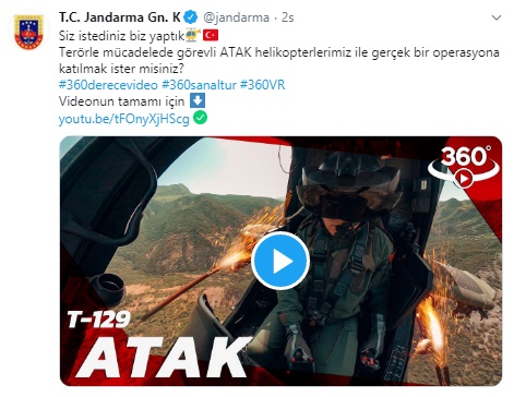 TUSAŞ tarafından üretilen T-129 ATAK tipi taarruz helikopterinin kokpitinden 360 derece sanal gerçeklik teknolojisiyle çekilen video, sosyal medyada yoğun ilgi gördü.