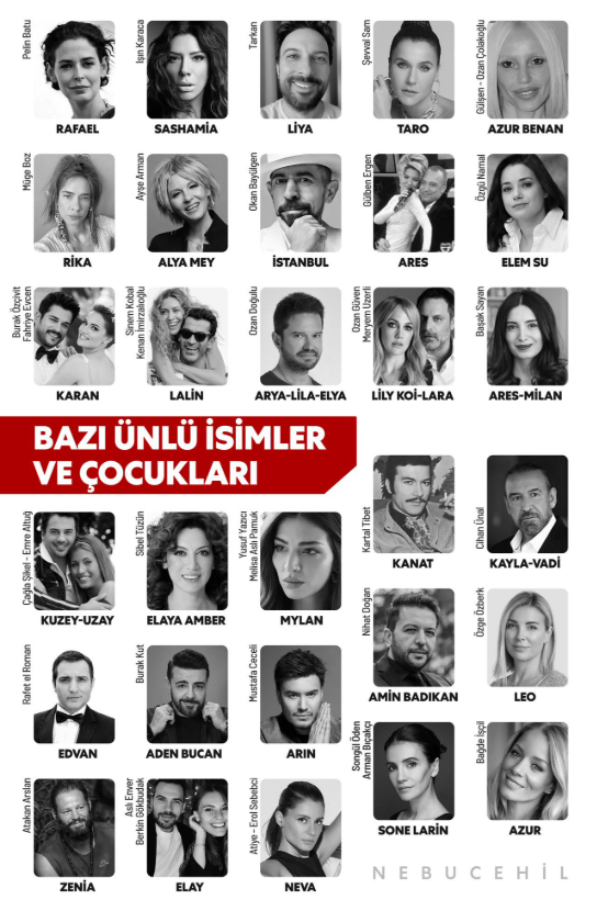 Görsellerde yer alan ve toplumun önünde "Atatürkçülük" dersi veren ünlülerin çocuklarına koydukları isimler, savundukları söylemlerle tam bir tezat oluşturuyor: