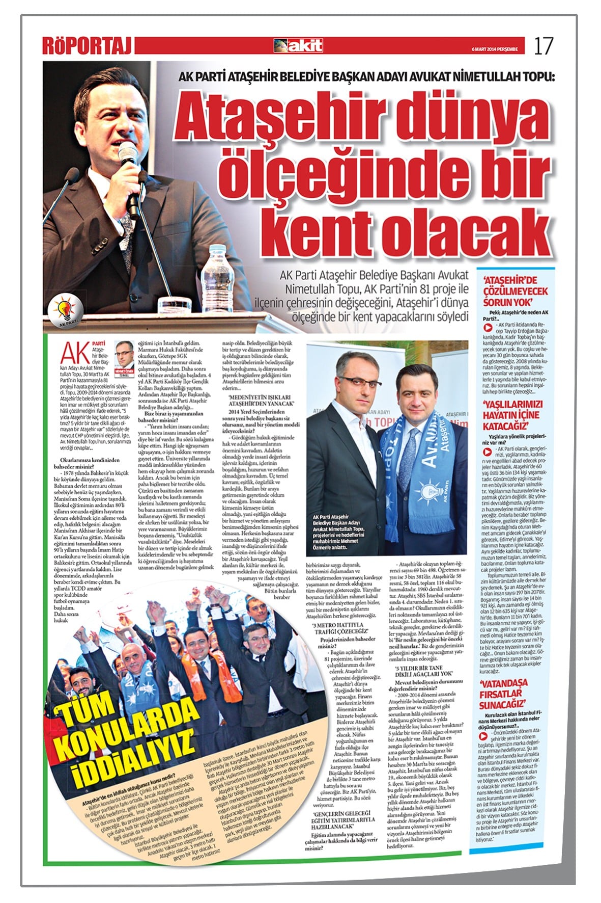 AK Parti Ataşehir Belediye Başkanı Avukat Nimetullah Topu, AK Parti’nin 81 proje ile ilçenin çehresinin değişeceğini, Ataşehir’i dünya ölçeğinde bir kent yapacaklarını söyledi