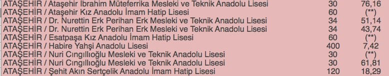 Ataşehir lise taban puanıları 2020 yüzdelik dilimleri