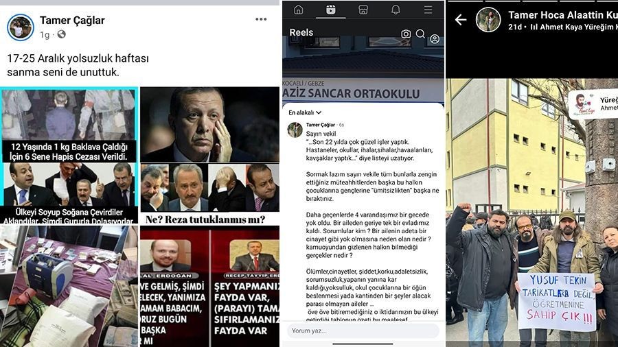 Hakkında çok sayıda şikâyet bulunan Çağlar’ın, Recep Tayyip Erdoğan ve Yusuf Tekin ile ilgili paylaşımlarıyla tepki çektiği, okulda eğitim-öğretim faaliyetlerini olumsuz etkilediği, öğretmenler ve idareciler hakkında itham ve iddialarda bulunduğu, kurumun huzur ve sükûnunu bozucu davranışlar sergilediği belirlendi.