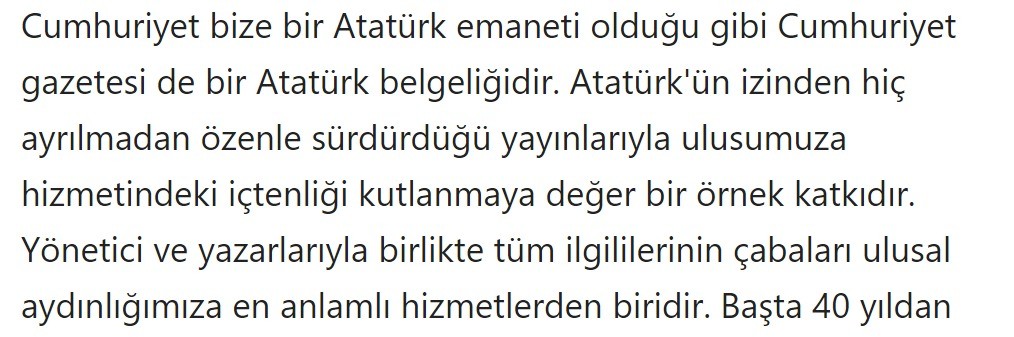 28 Şubat döneminin Anayasa Mahkemesi Başkanı, başörtüsü yasakçılarının önde gelenlerinden Yekta Güngör Özden, Sözcü'deki 'Cumhuriyetimizin adaşı' başlıklı köşe yazısında Cumhuriyet Gazetesi'ne övgüler dizdi.