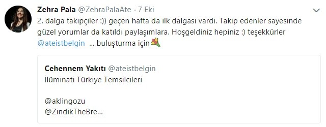 Attığı bir tweette kendisini takip eden, Allah, İslam ve Peygamber düşmanı sefilleri yönlendiren Ateizm Derneği Başkanı Pala, takipçilerine yılışık ifadelerle övgülerde bulunuyor.