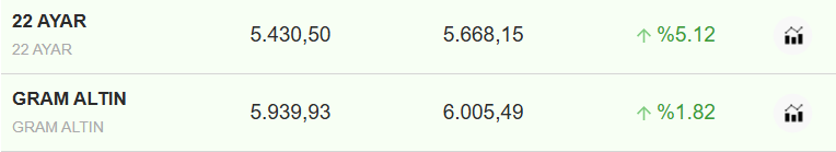 Ateşi yükselen gram altın 6 bin lira seviyesini aştı. Altının gramı an itibariyle 6 bin 5 liradan satılıyor.
