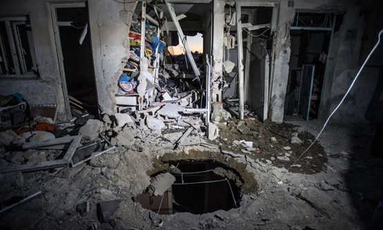 Bu arada dernek yetkilileri, basın mensuplarına roketin düştüğü binayı gezdirdi. Çatı katına isabet eden merminin yaklaşık 60 santimetre çapında delik açtıktan sonra binanın birinci katına düştüğü görüldü. Bunanın çatı katı yerle bir olurken, alt katlarında da büyük hasar oluştuğu gözlendi.