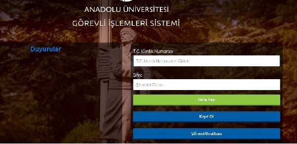Anadolu Üniversitesi Görevli işlemler giriş