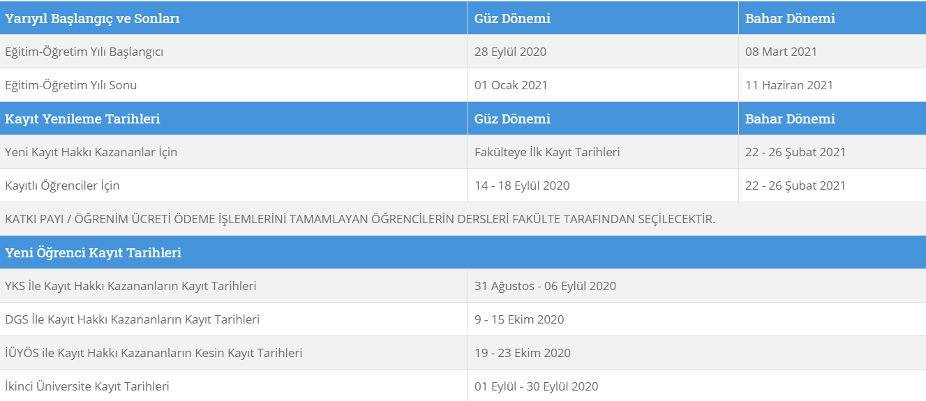01.03.2021 tarihinde Cumhurbaşkanlığı tarafından ilan edilen illere göre risk durumu çerçevesinde yüz yüze sınav uygulamalarının oluşturabileceği olumsuzluklar göz önünde bulundurularak 2020-2021 eğitim-öğretim yılı bahar yarıyılı ara sınavlarının çevrim içi (online) yapılmasına karar verilmiştir. Bitirme ve telafi sınavlarına ilişkin bilgilendirme, salgın sürecinin gidişatına göre önümüzdeki haftalarda yapılacaktır.