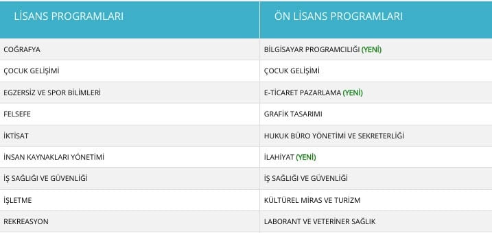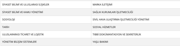 AUZEF ikinci üniversite önlisans ve lisans bölümleri hangileri?