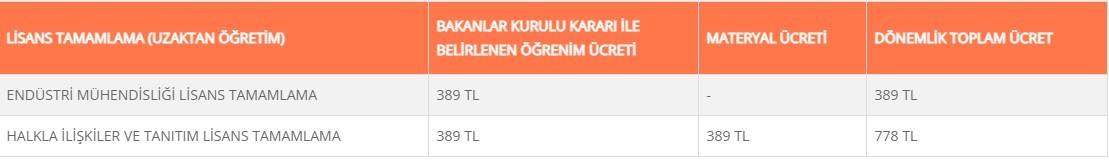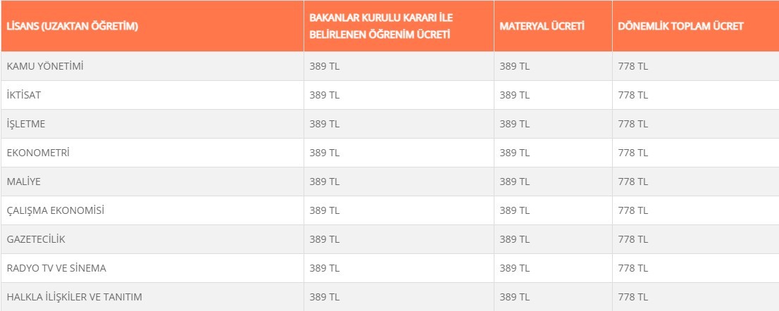 AÇIK ÖĞRETİM PROGRAMLARI KAYIT YENİLEME ÜCRETLERİ 2021