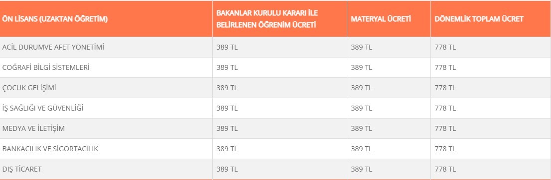 UZAKTAN EĞİTİM PROGRAMLARI KAYIT YENİLEME ÜCRETLERİ 2021