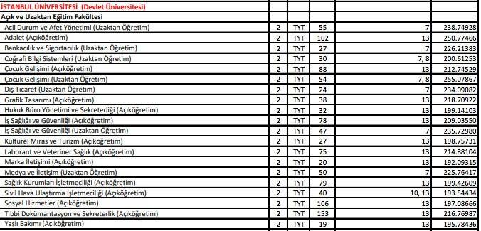 AUZEF Acil Durum ve Afet Yönetimi (Uzaktan Öğretim) TYT puanı 238.74928