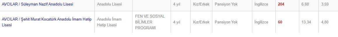Avcılar lise taban puanları yüzdelik dilimleri 2021