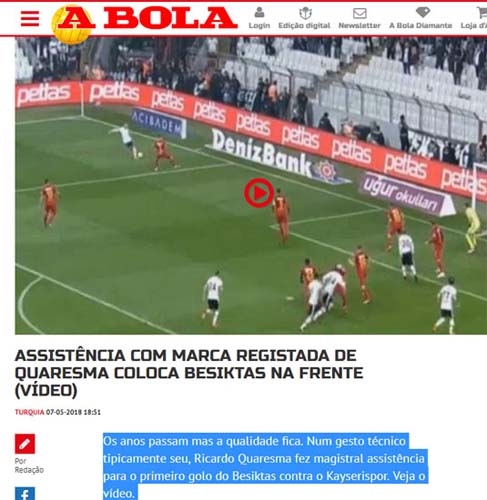 Portekiz gazetesi Abola, "Yıllar geçiyor ama kalite kalıyor. Quaresma, Beşiktaş'ın ilk golünde müthiş bir asist yaptı" şeklinde yorum yaptı.