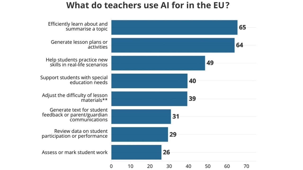 Avrupa genelinde öğretmenler AI'yı ne kadar yaygın kullanıyor? Hangi ülkeler önde? Öğretmenler AI'dan en çok hangi amaçla yararlanıyor?