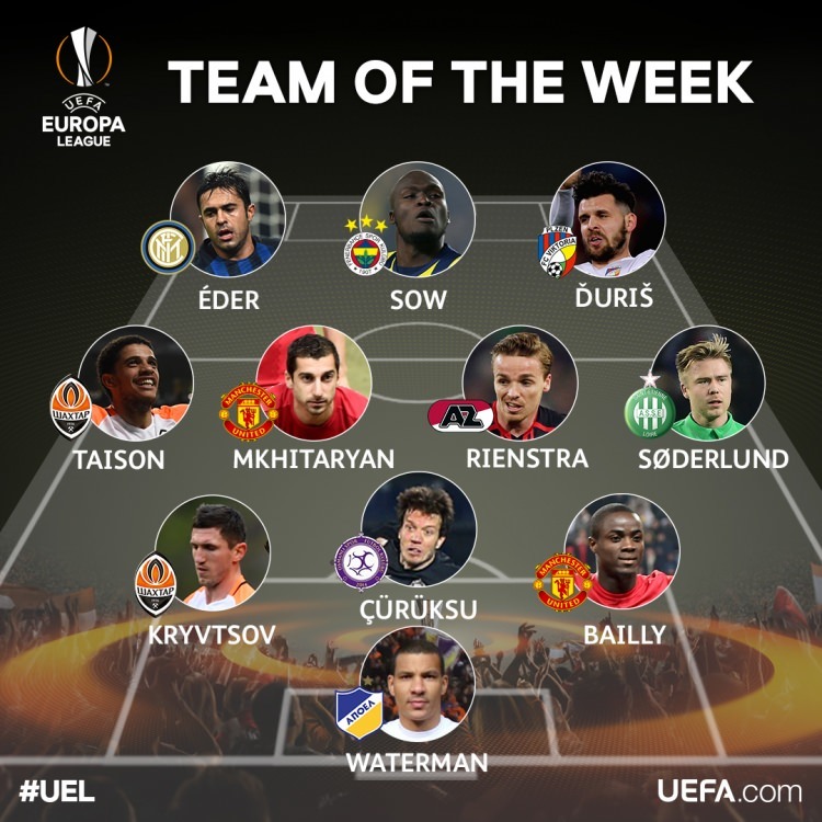 Fenerbahçe'nin Senegalli yıldızı Moussa Sow ve Osmanlısporlu stoper Numan Çürüksu, UEFA Avrupa Ligi'nde haftanın takımına girdi.